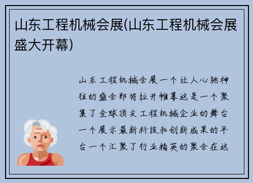山东工程机械会展盛大开幕,让我们一同踏上这场奇妙的旅程,领略工程机械行业的无限魅力!让我们共同见证工程机械的辉煌,共同追寻未来的发展之路!